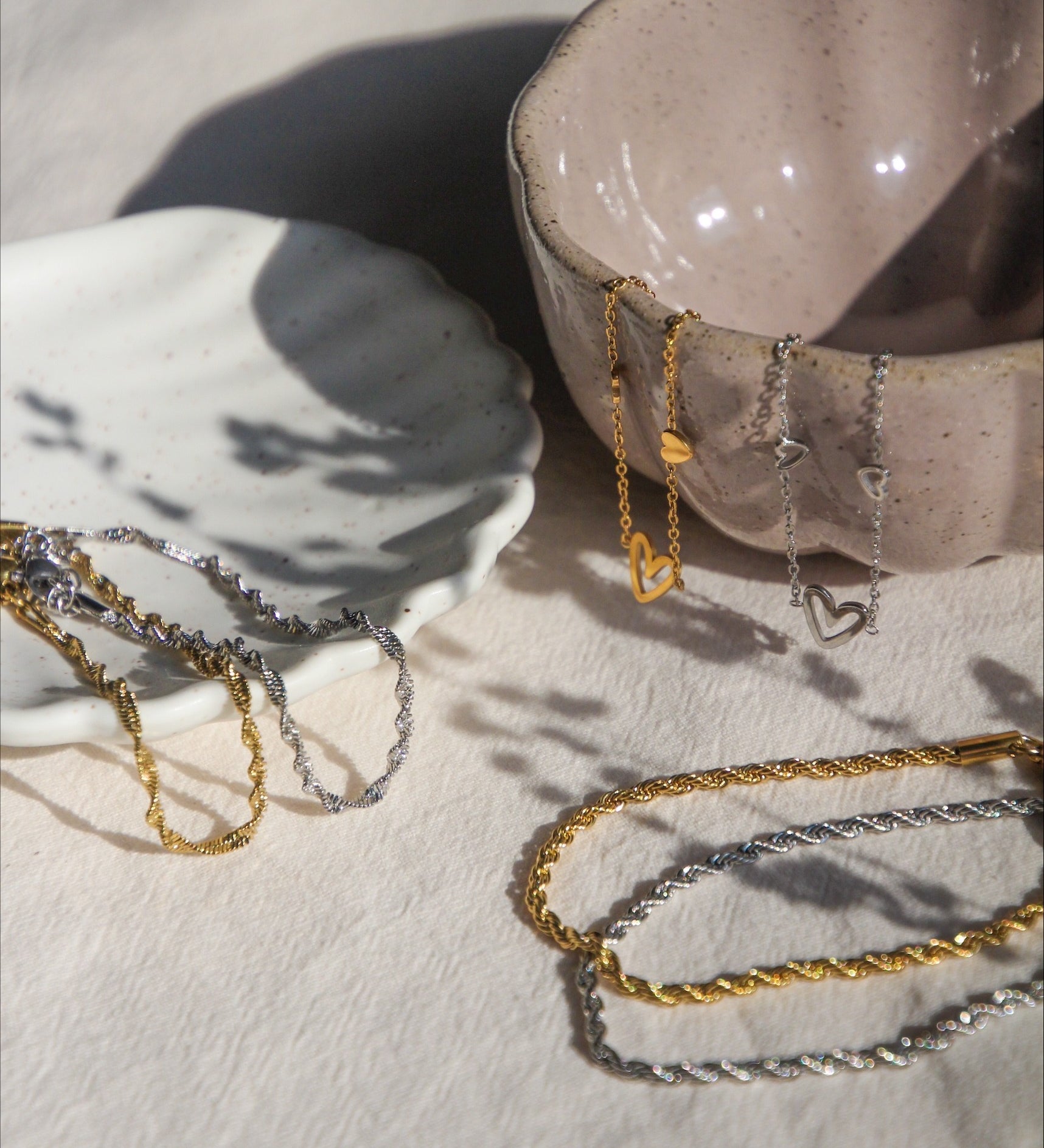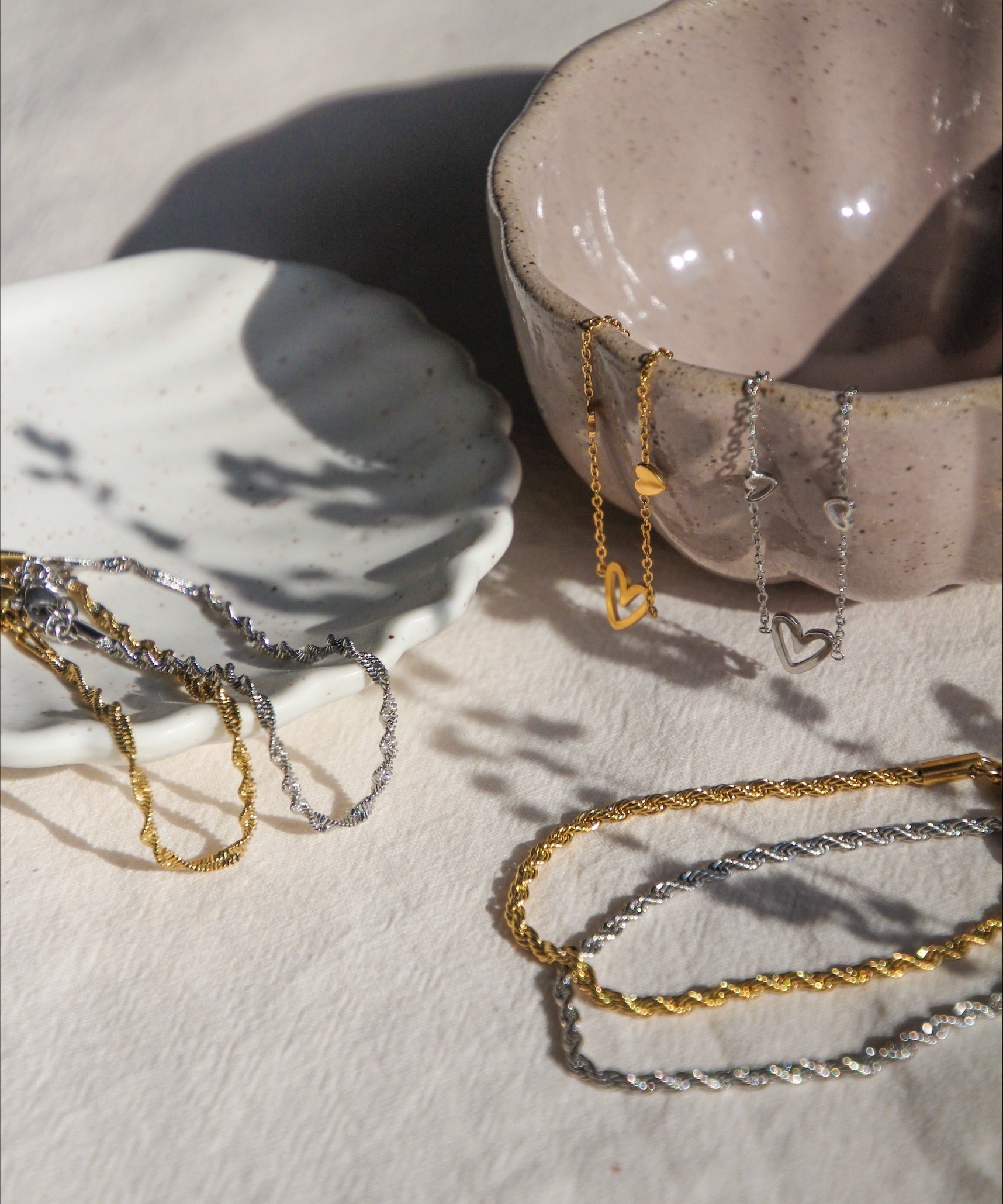 Speel met lengtes, verfijnd of gecombineerd met bedels; Mix & Match de kettingen hier.