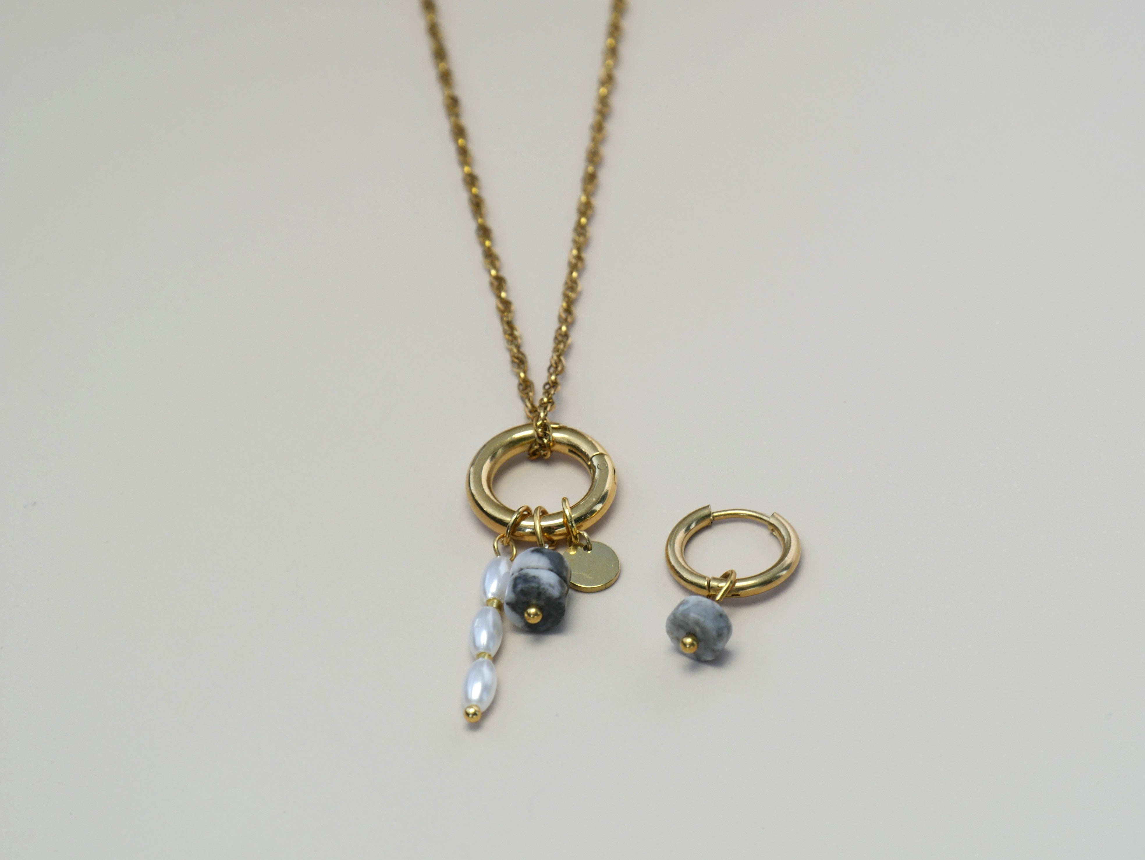 Zwart witte natuursteen dubbele disc-zilver
