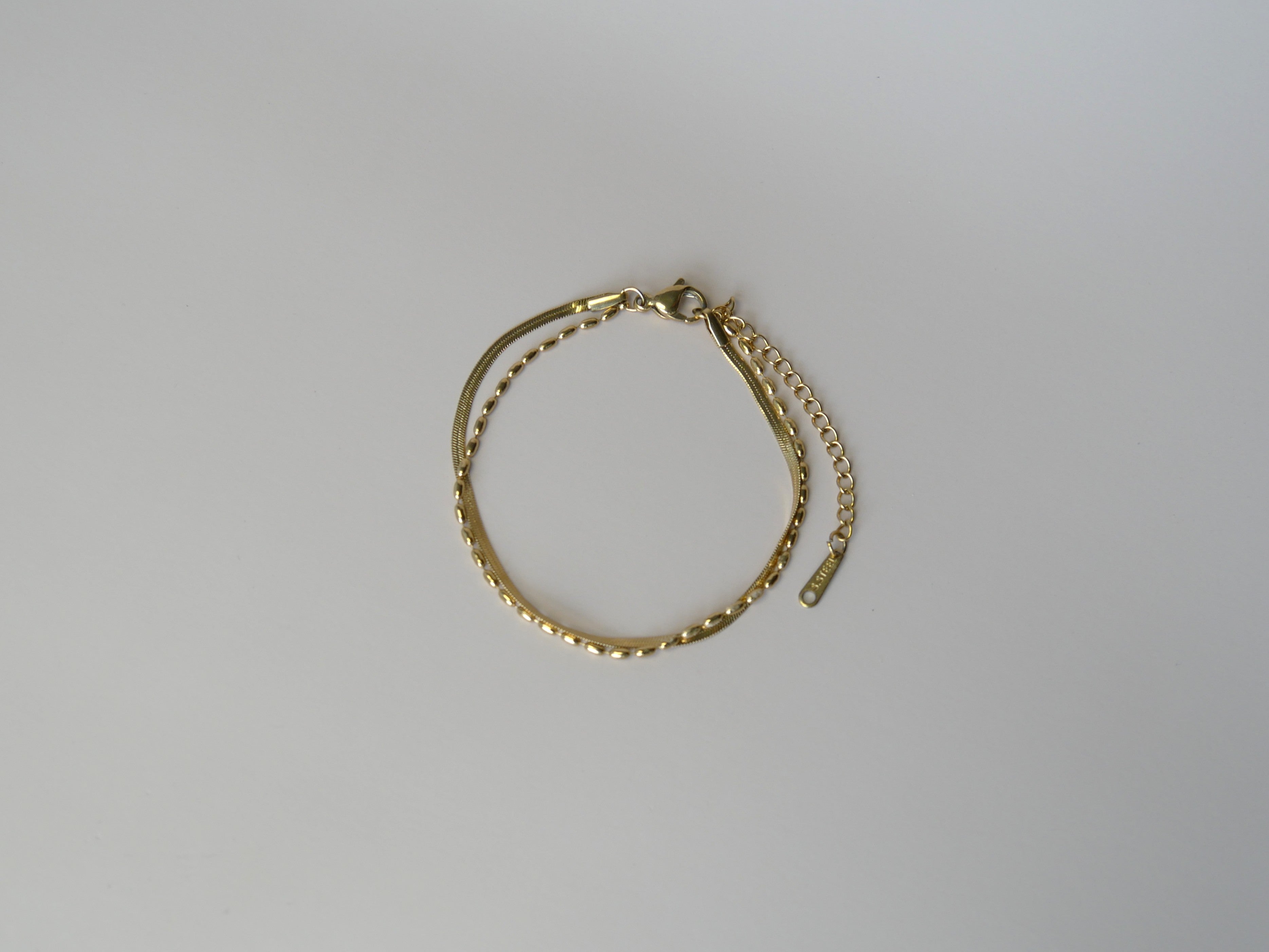 Dubbele armband met blauwe kraaltjes-goud