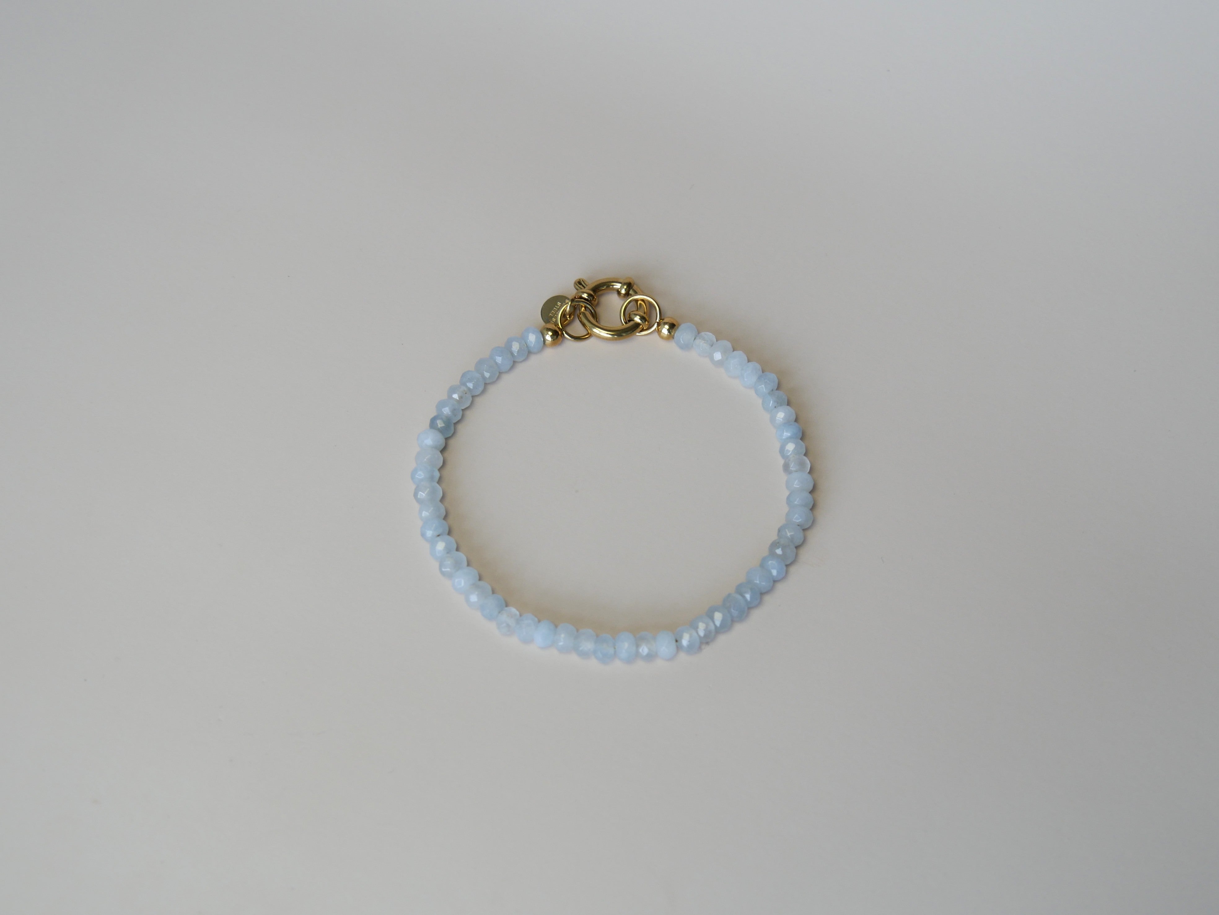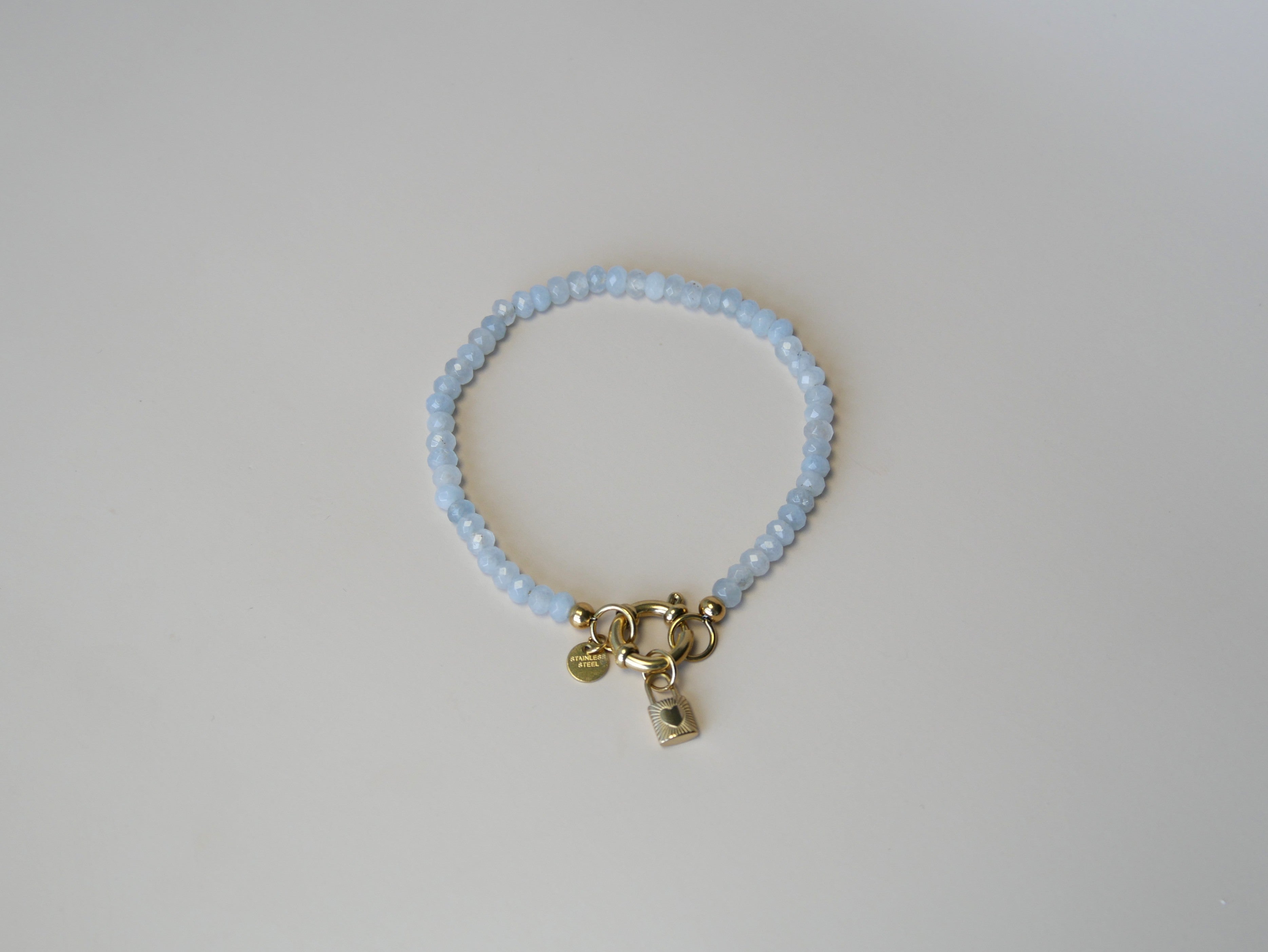 Armband van lichtblauwe kralen-goud