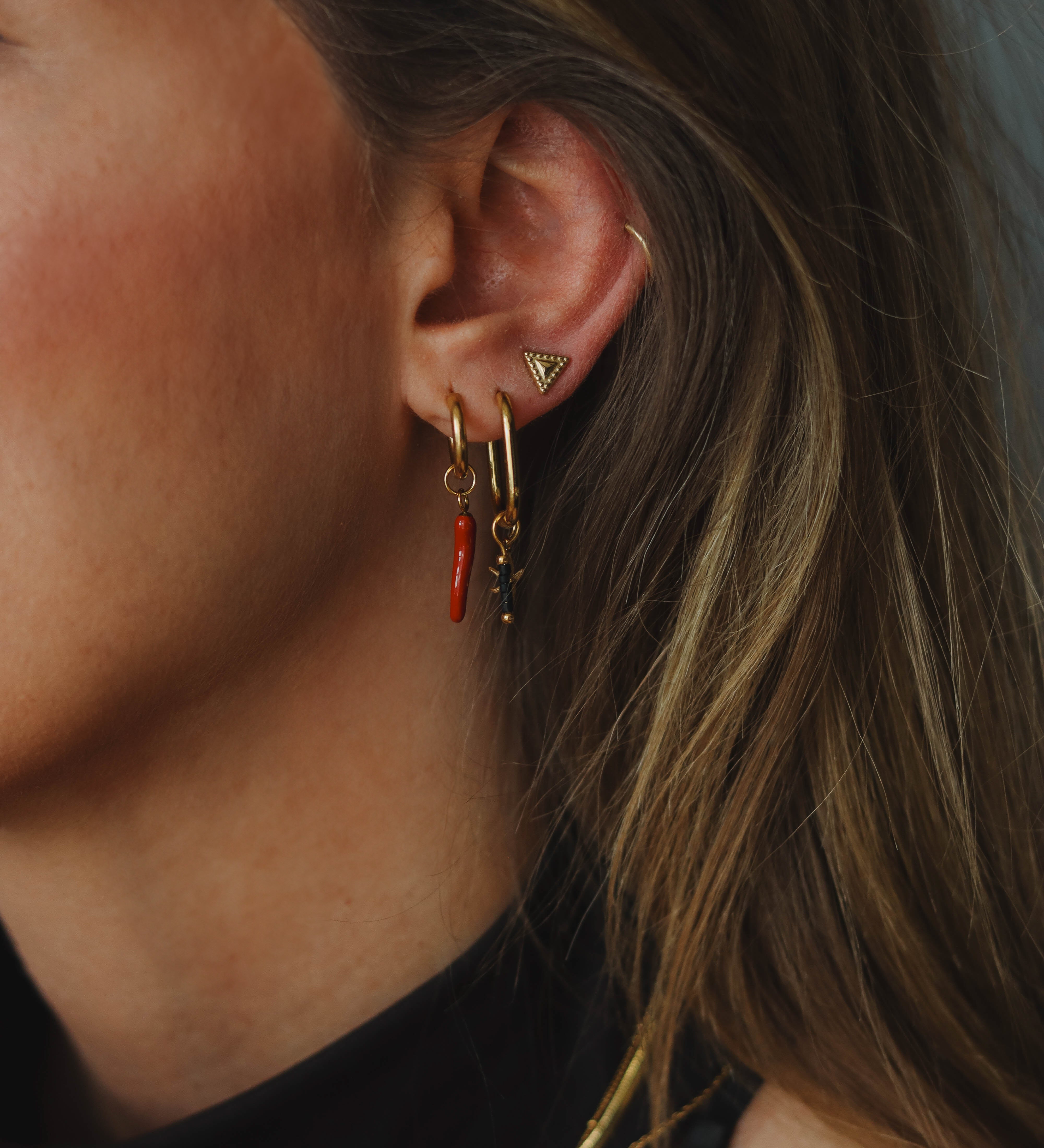 Onze oorbellencollectie biedt eindeloze combinaties.Draag ze puur en minimalistisch of maak ze eigen met een bedel. Subtiel of opvallend, elke dag een andere look die bij jou past.Onze hoops en studs zijn perfect met elkaar te combineren.
