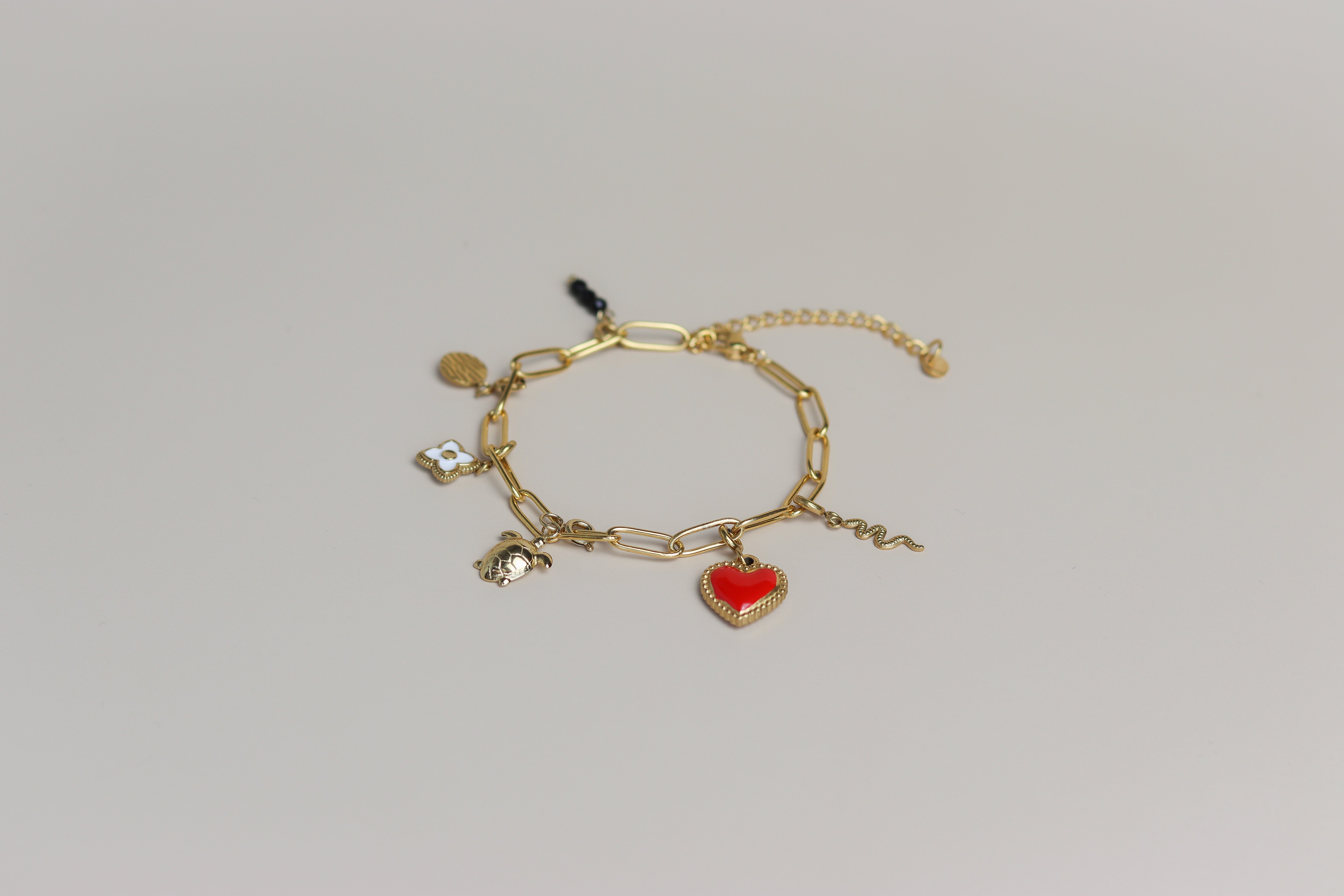 Knijpbedel zwarte kraaltjes-goud